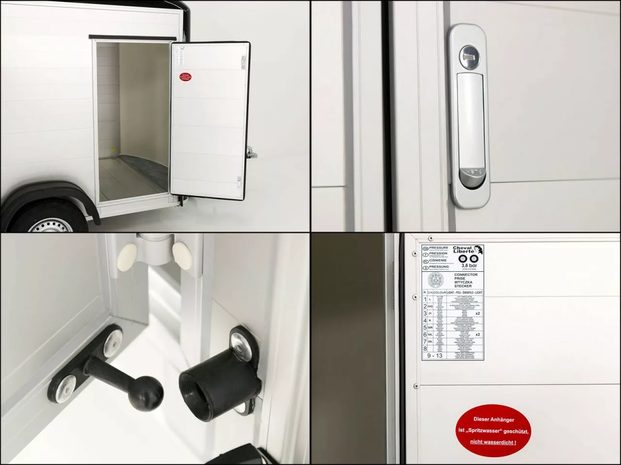 Lademaß ca. 1640 mm x 3000 mm x 2000 mmnAußenmaße ca. 2140 mm x 4470 mm x 2350 mmnzulässiges Gesamtgewicht: 2600 kgnNutzlast: ca. 1975 kg (Nutzlast variiert je nach Zusatzausstattung)nHersteller: DebonnnBesonderheitenn- Aluminium Koffern- Polyesterdach und Bug ( Aerodynamisch )n- Pullmann V2 Niederflurfahrwerkn- Bodenplatte: Aluminium Boden ( Rutschhemmend )n- Tür / Rampen Kombination ( Aluminium )n- Radstoßdämpfer montiert inkl. 100 km/h Zulassungn- Seitentür, verschließbarn- Innenbeleuchtung, mit Schaltern- 6 Verzurrösen auf Ladebodenn- Fahrzeugpapiere inklusivennweitere Ausstattungn- Bremskeile + HalternnFahrwerkn- Pullman V2 | Gefedert mit Schraubfeder und Stoßdämpfer | V-Deichsel mit Zugkugelkupplung | Automatik-Schwerlaststützrad nnElektrikn- 12 Volt | 13 poliger Stecker | Begrenzungsleuchten | NebelleuchtennSie möchten diesen Anhänger kaufen oder haben weitere Anhänger-Rückfragen dann benutzen Sie bitte unsere interne Hochlader-Anhäger „Nr.K12413014“. #H110124