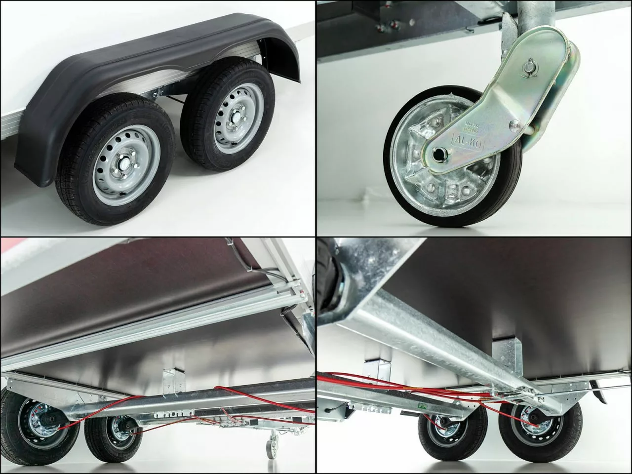 Lademaß ca. 1750 x 3660 mm Höhe 1940 mmnzulässiges Gesamtgewicht: 2600 kgnNutzlast: ca. 1985 kg (Nutzlast variiert je nach Zusatzausstattung)nHersteller: UnsinnnnBesonderheitenn- Sandwich Koffer / GFK Stahl-Sandwich ( gewichtsoptimiert ) n- Innenverkleidung Stahlblech ( stoßfest )n- GFK Außenhaut ( UV – Schutz gegen Vergilbung ) n- Außenwände glatt / spezial versiegelt ( für individuelle Beschriftungen & Beklebungen )n- Lichtdach ( Transparent bei Tageslicht )n- Heckrahmen und Einfassprofile Aluminium eloxiertn- Stäbchenzurrschiene, vorne und Seitenwände ( Höhe: 900mm ) n- 8 Verzurrösen im Seitenprofil ( verschiebbar )nnweitere Ausstattungn- Boden: Holzbodenn- Doppelflügeltür mit Edelstahl Drehstangenverschluß / abschließbarn- Schwerlast-AutomatikstützradnnFahrwerkn- Achse u. Zugrohr komplett feuerverzinkt | Gummifederachse | V-Deichsel mit Zugkugelkupplung | Rückfahrautomatik |nnnElektrikn- 12 Volt | 13 poliger Stecker | Begrenzungsleuchten | Nebelleuchte | Schwenkbare LED Innenbeleuchtung mit BewegungsmeldernnSie möchten diesen Anhänger kaufen oder haben weitere Anhänger-Rückfragen dann benutzen Sie bitte unsere interne Koffer-Anhänger „Nr.14412292“. #071124