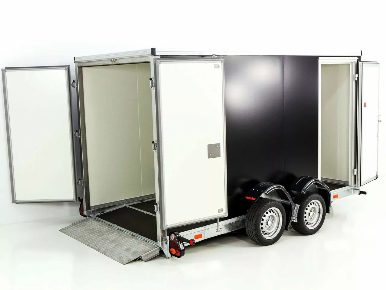 Vezeko Koffer-Absenkanhänger 157x344cm Höhe:190cm 2,7t|Tür|schwarz