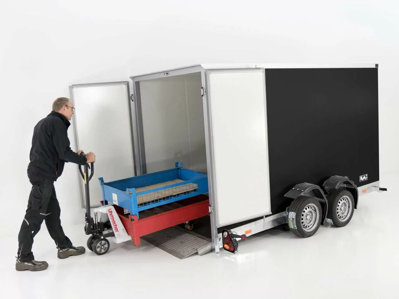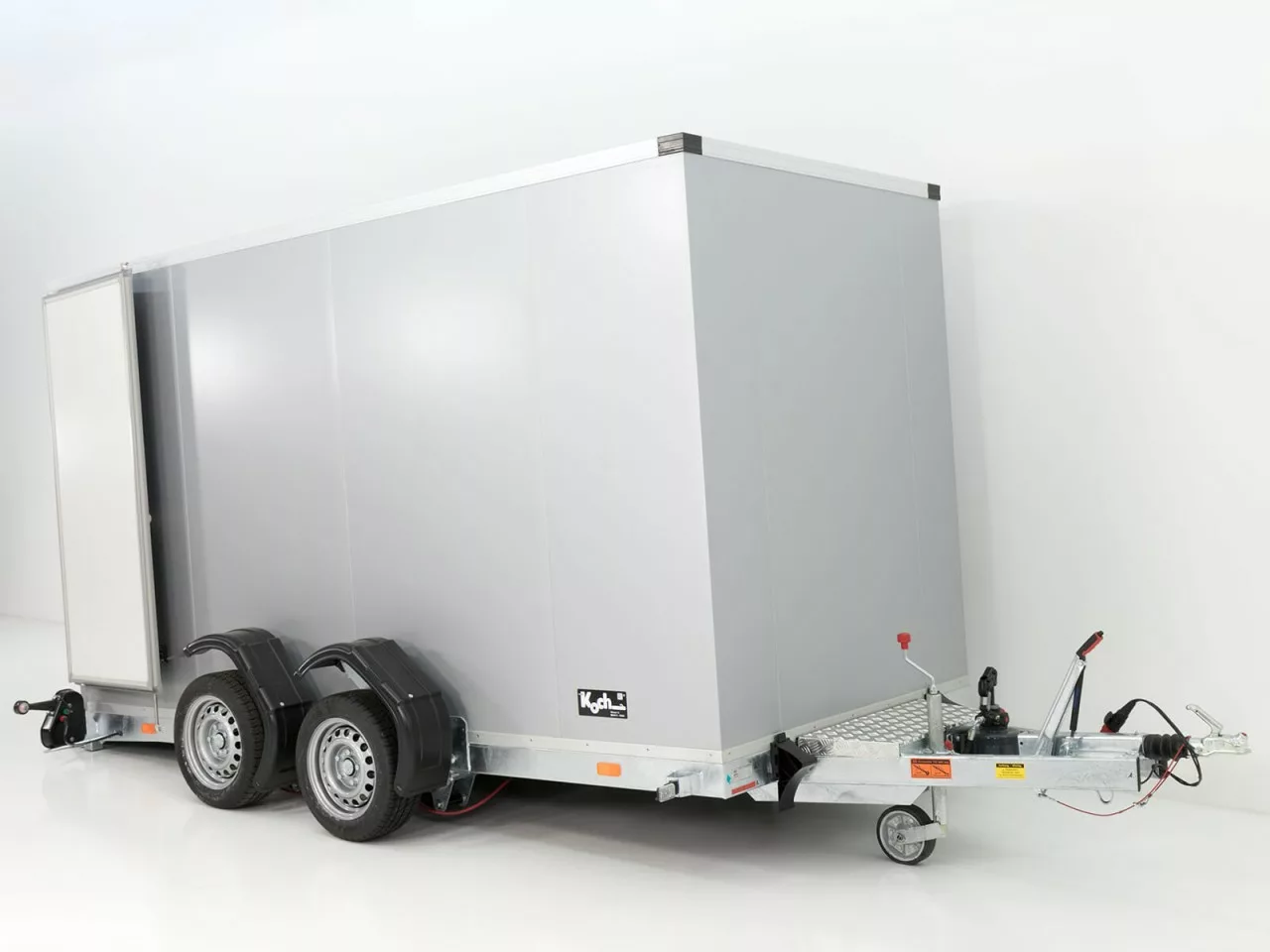 Vezeko Koffer-Absenkanhänger – 2,7 t, 157 × 344 cm, Höhe 210 cm, schwarz