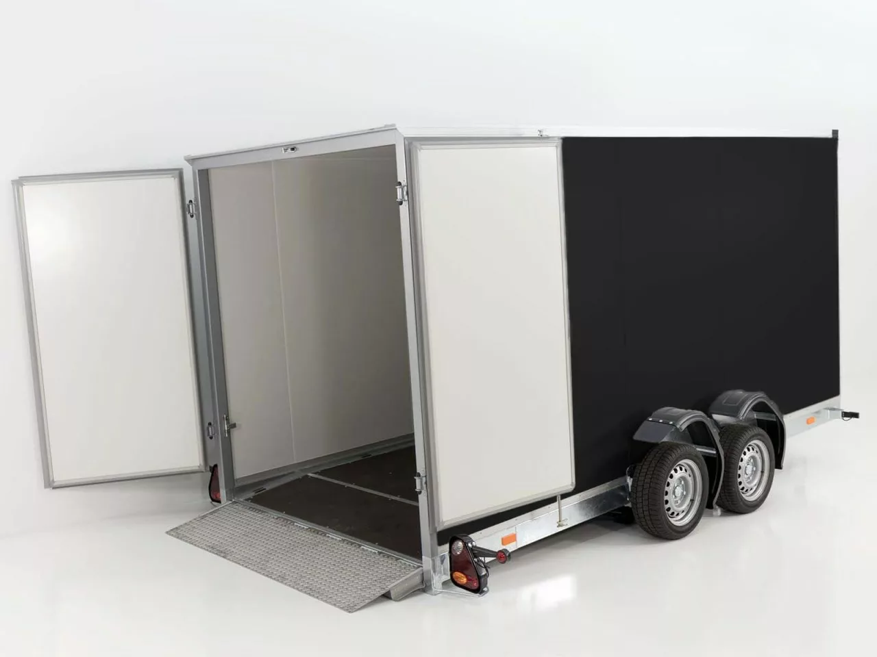 Vezeko Koffer-Absenkanhänger – 3,5 t, 167 × 400 cm, Höhe 190 cm, schwarz
